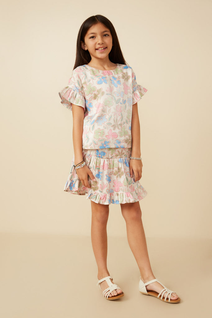 Our Floral Ruffle Sleeve Foiled Top Features: