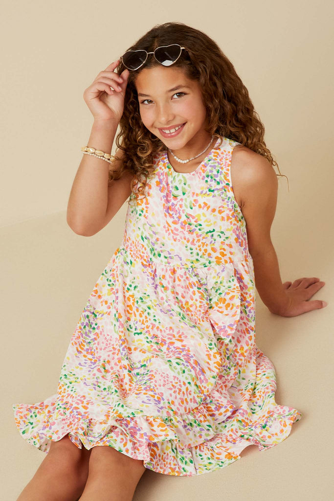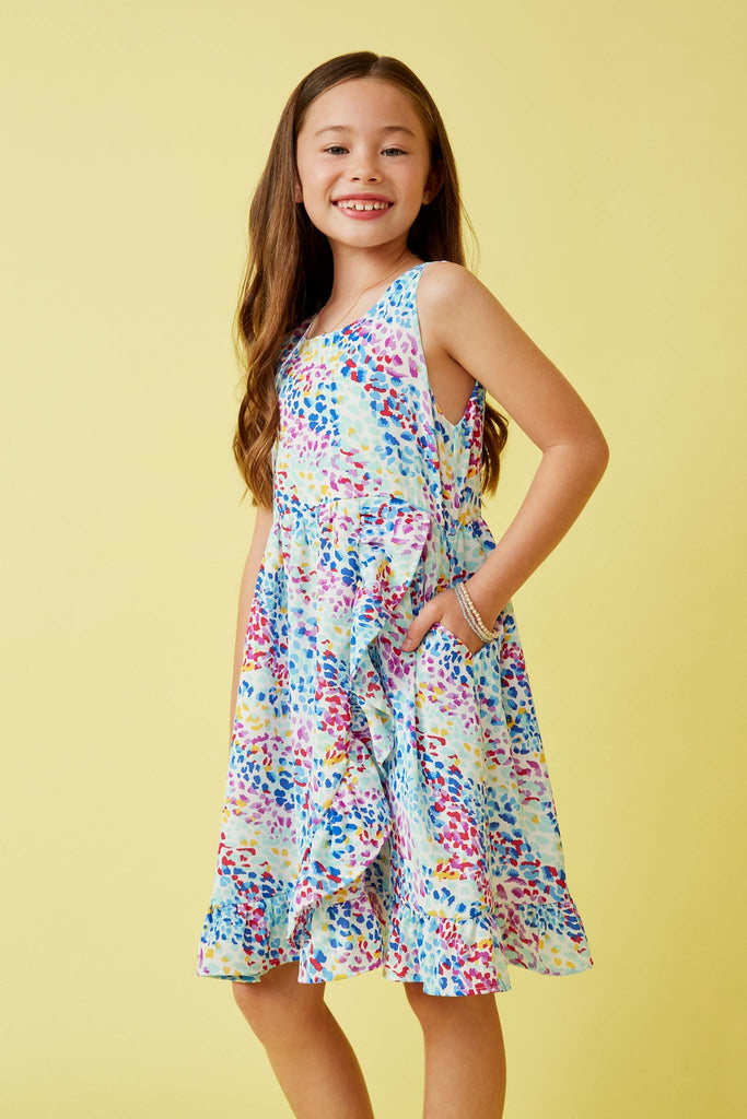Our Abstract Multi Color Dot Ruffled Tank Dress Features: