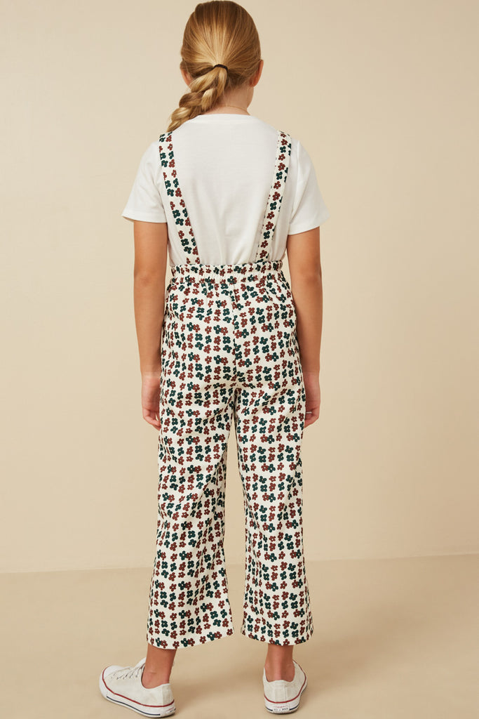 Brushed Floral Print Straight Leg Overalls