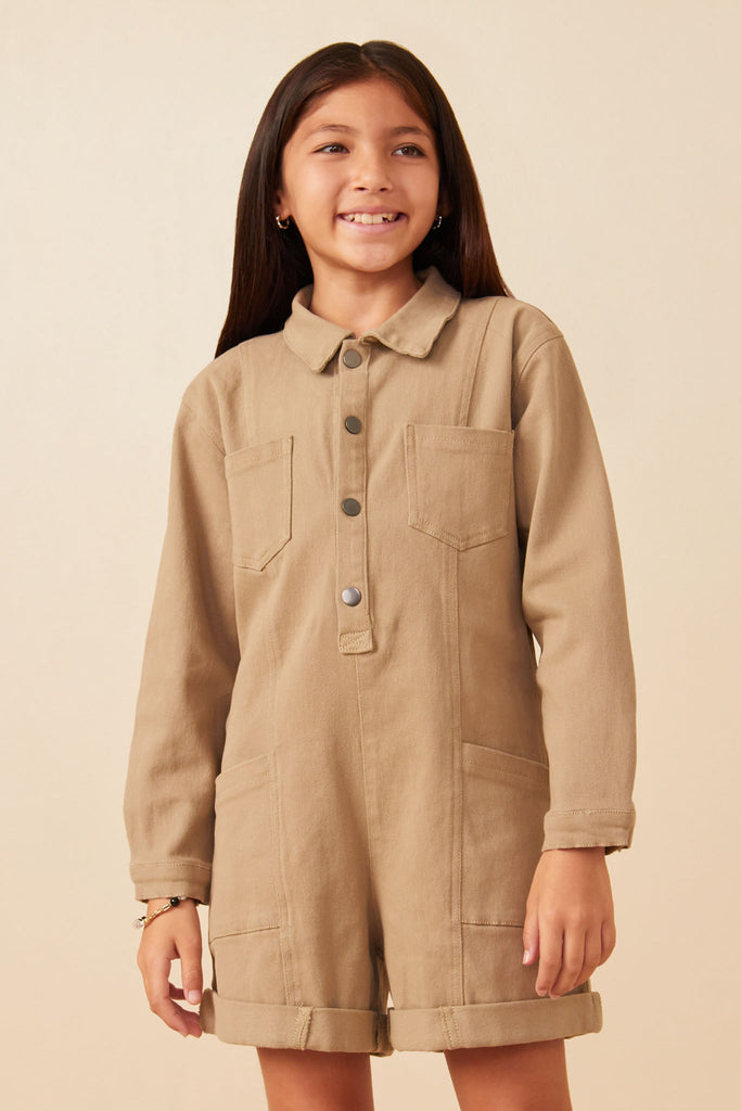 Our Button Up Cargo Pocket Long Sleeve Romper Features: