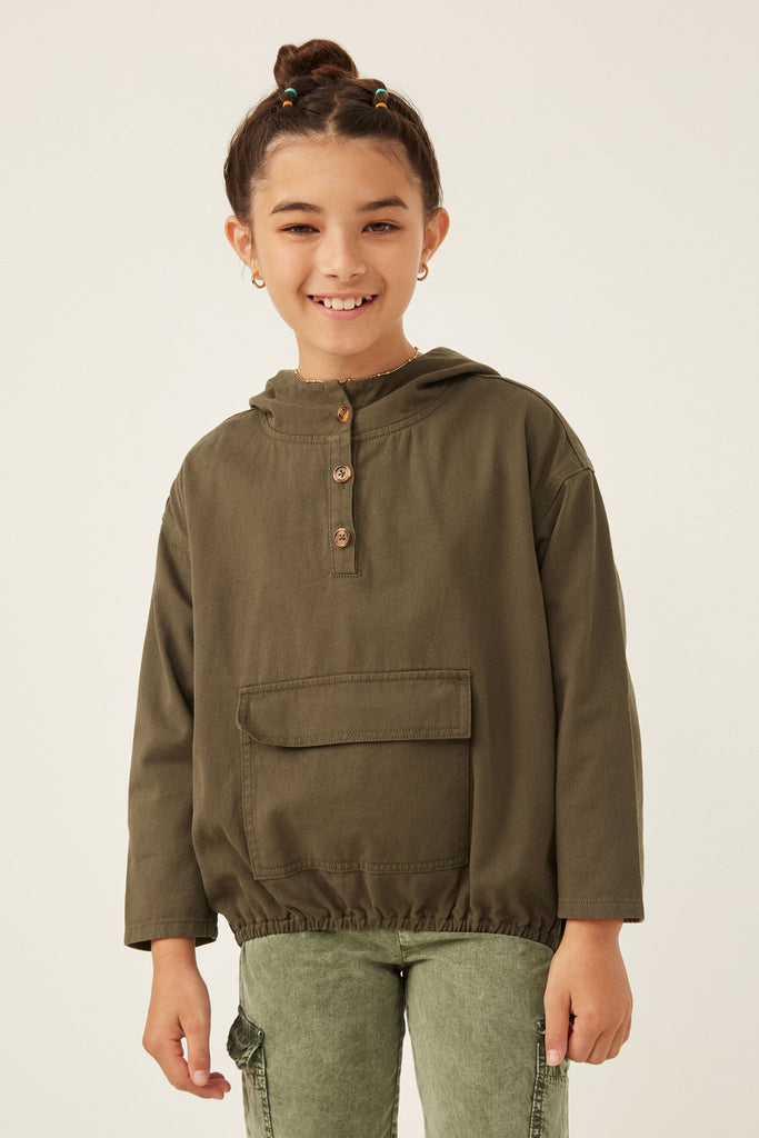 Our Buttoned Cargo Pocket Hooded Top Features: