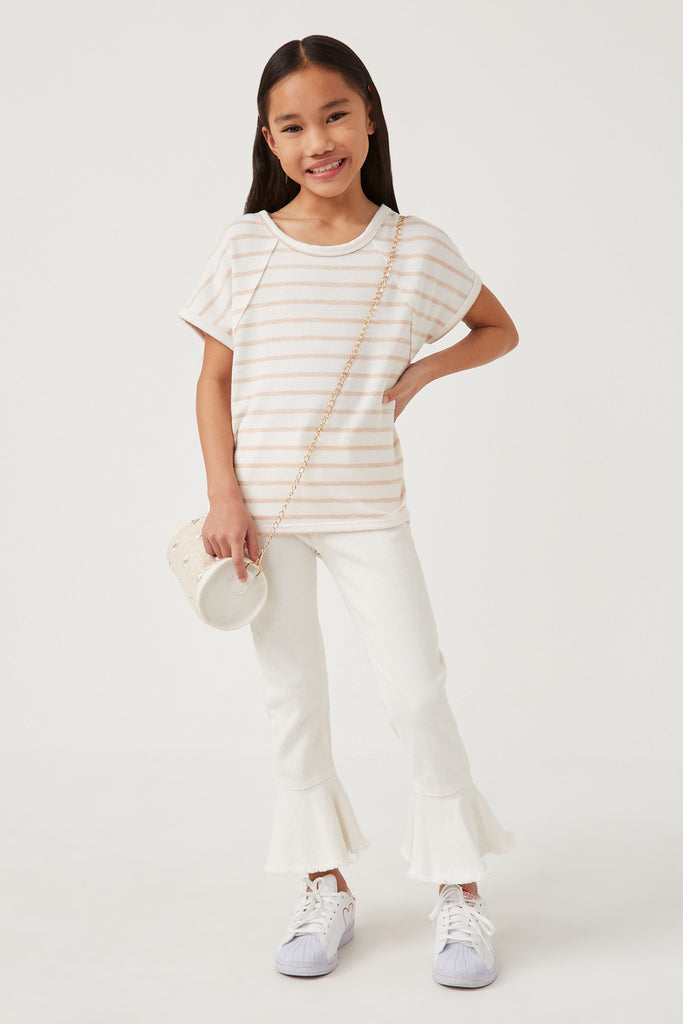 Our Chalk Striped Raw Edge Raglan Knit Top Features: