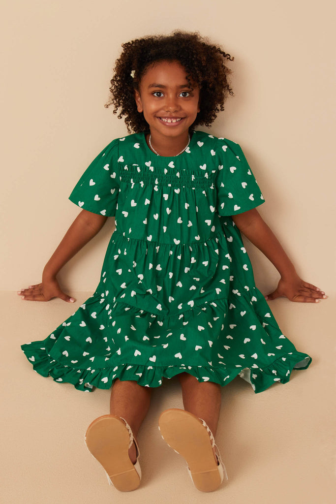 Our Ditsy Hearts Short Sleeve Tiered Dress Features: