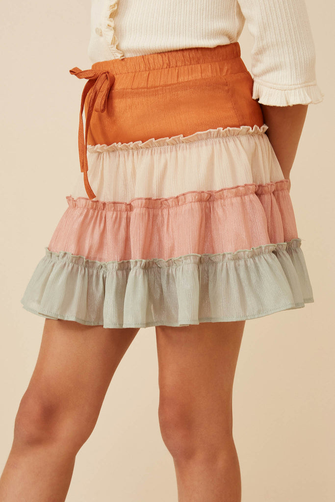 Drawstring Color Blocked Textured Tiered Skirt