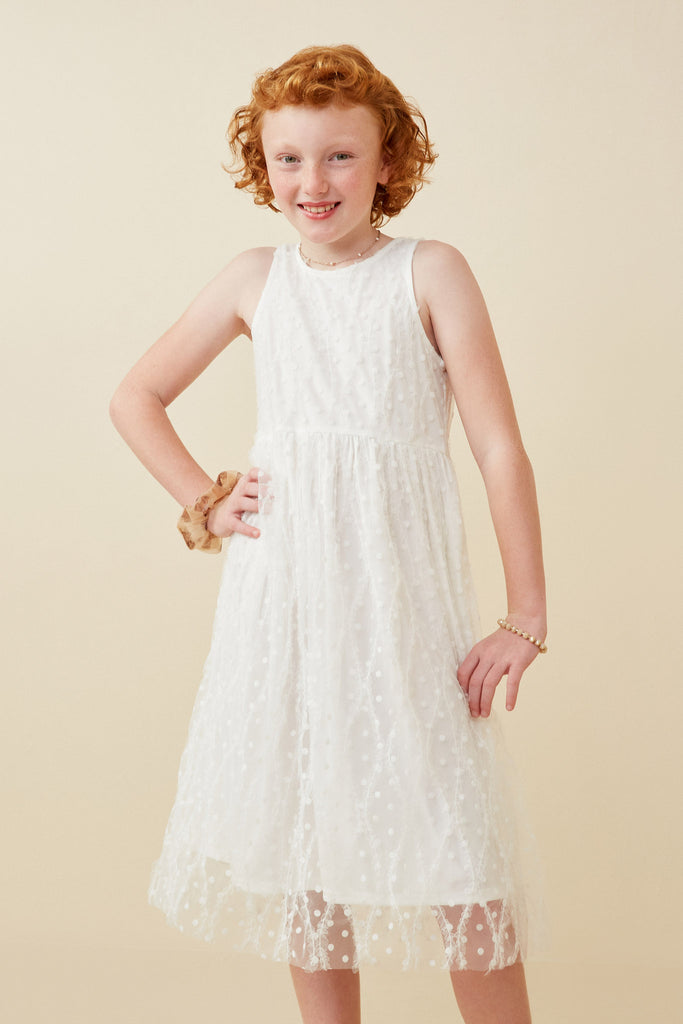 Our Flocked Polka Dot Mesh Tank Dress Features: