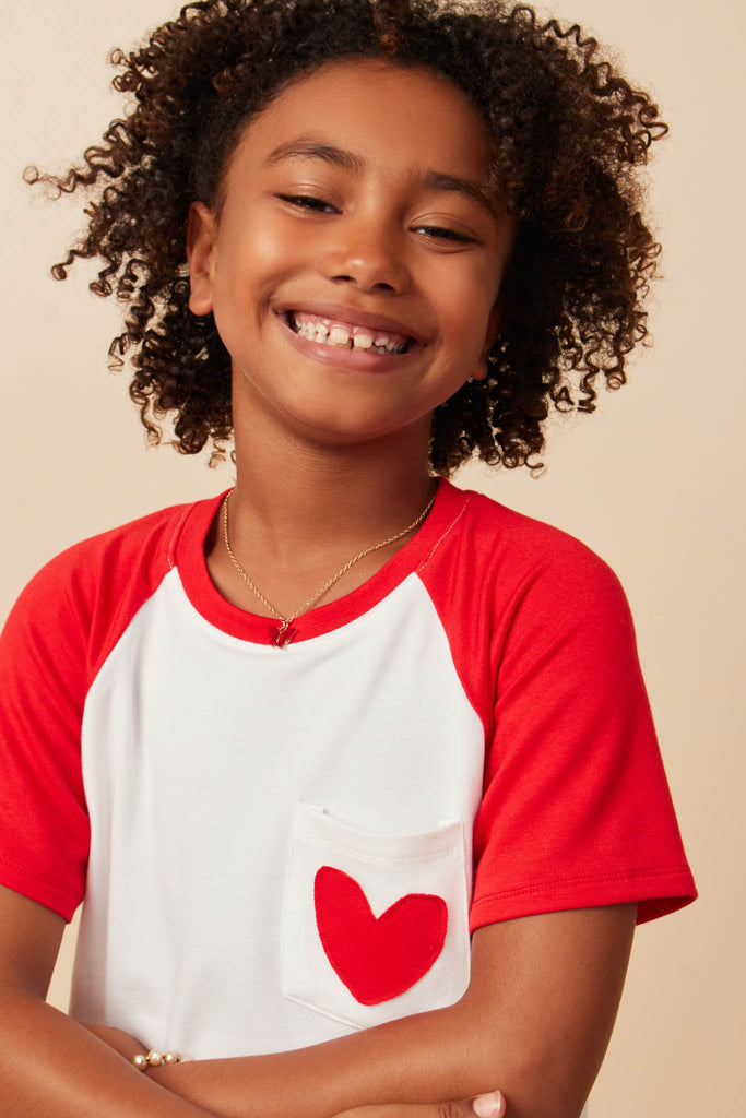 Heart Patch Pocket Raglan French Terry Knit T Shirt