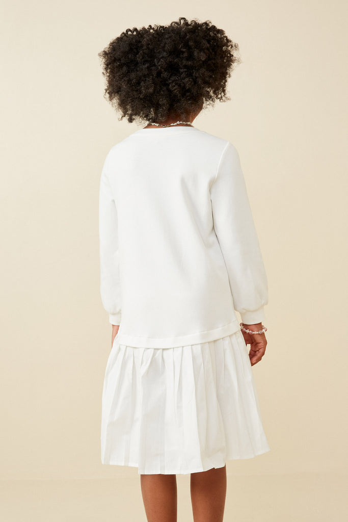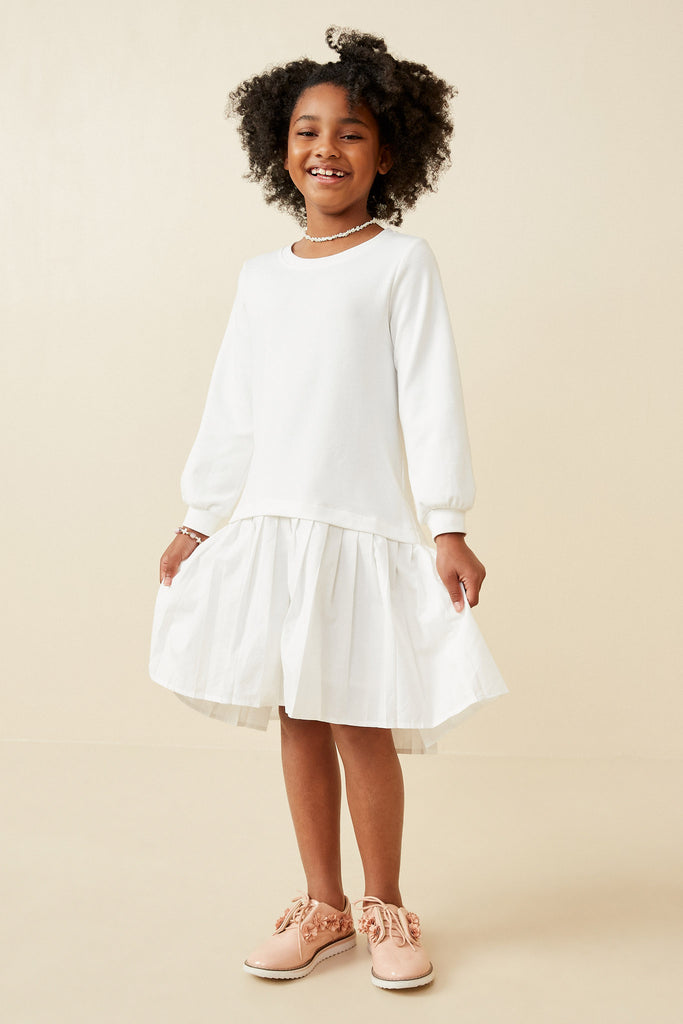 Our Mix Media Pleated Skirt Long Sleeve Dress Features: