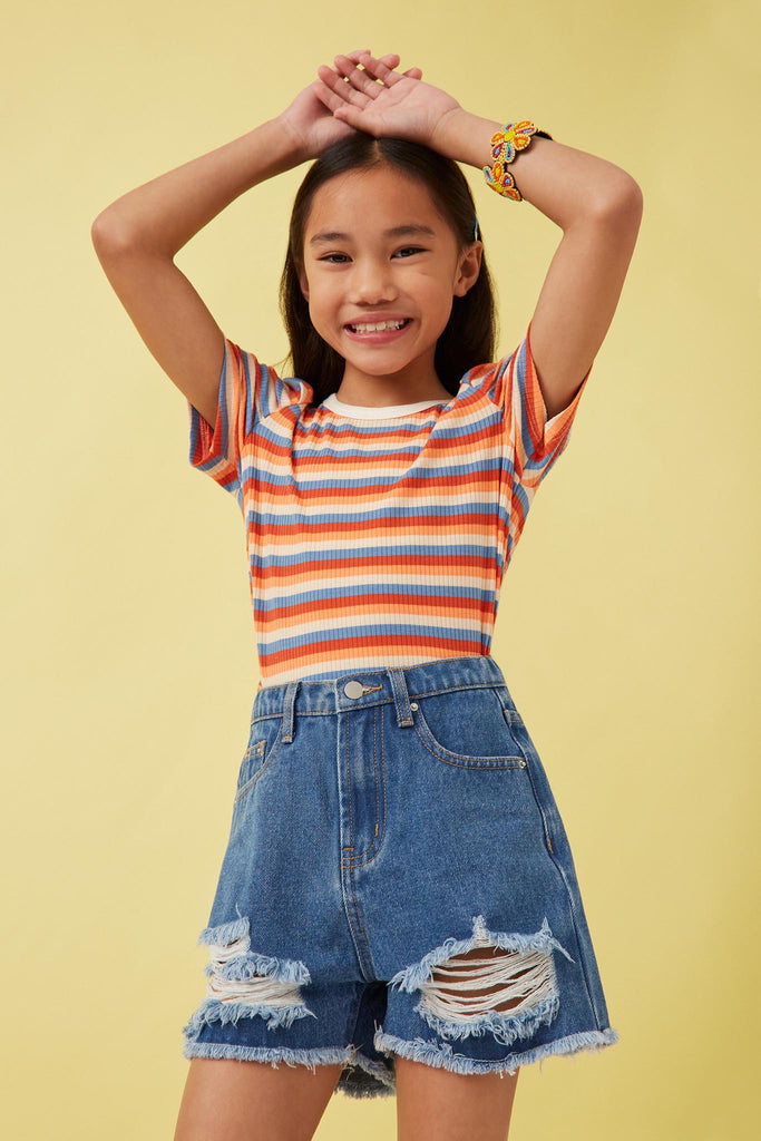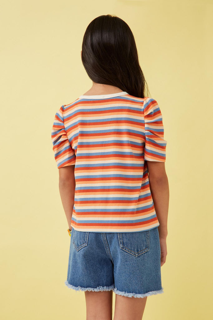Our Multi Color Stripe Puff Shoulder Top Features: