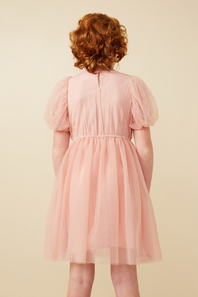 Smocked Puff Sleeve Mesh Dress