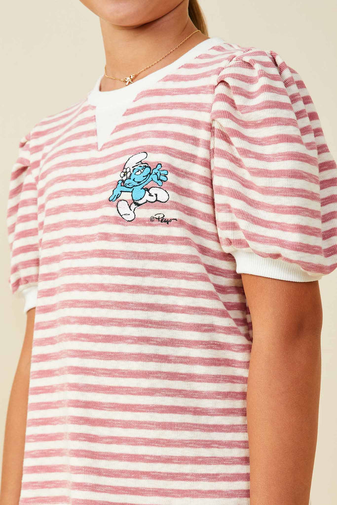 Smurfs Vanity Smurf Patch Striped Knit T Shirt