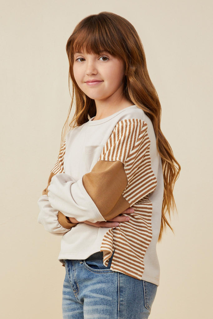 Our Stripe And Color Block Sleeve Detail Knit Top Features: