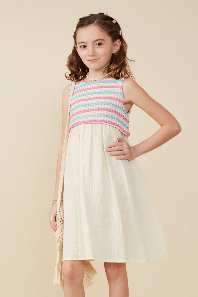 Our Textured Knit Tank With Botanical Skirt Mix Media Dress Features: