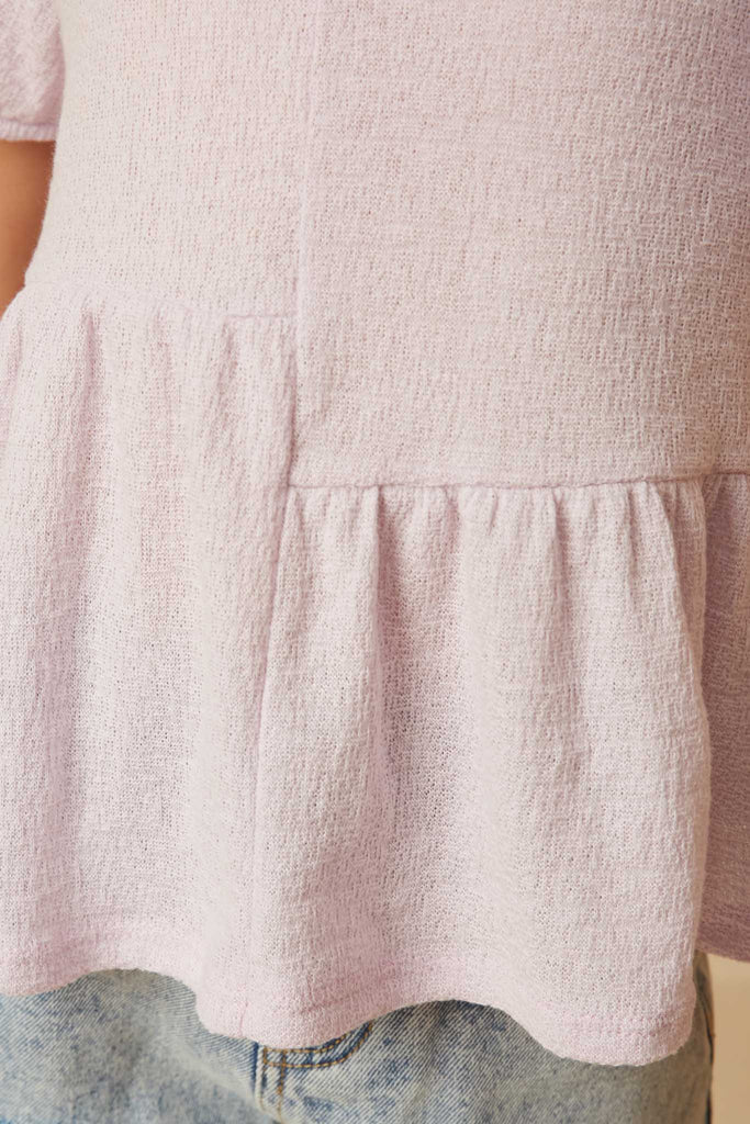 Textured Puff Sleeve Asymmetric Panel Knit Top