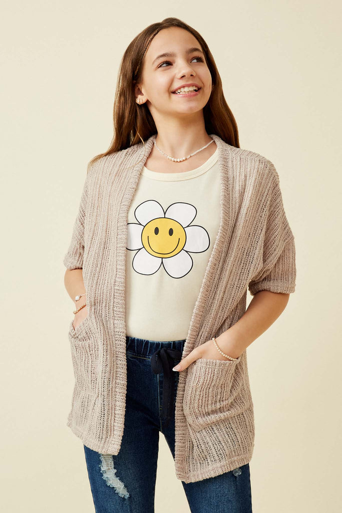Our Textured Ribbed Knit Short Sleeve Kimono Features: