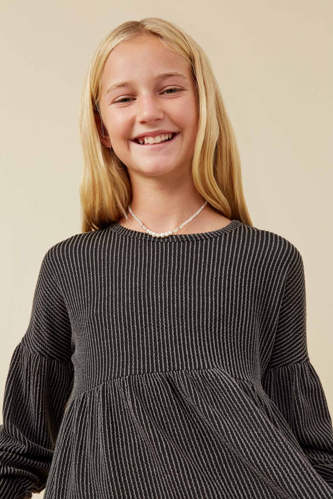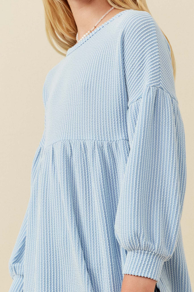 Textured Stripe Baby Doll Long Sleeve Knit Top