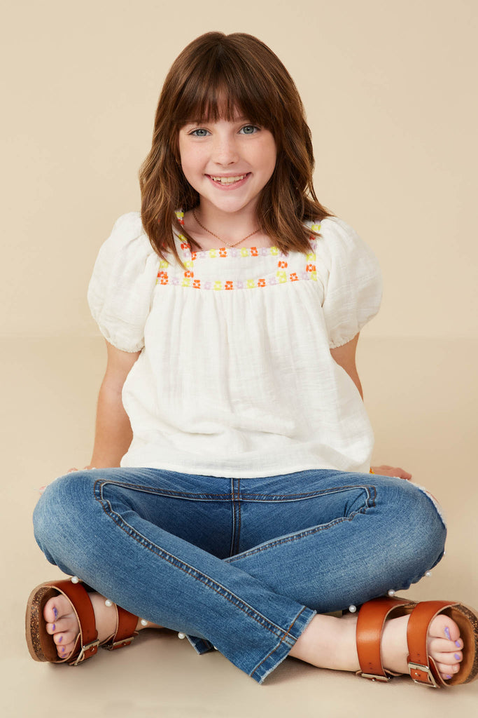 Contrast Floral Lace Square Neck Textured Top