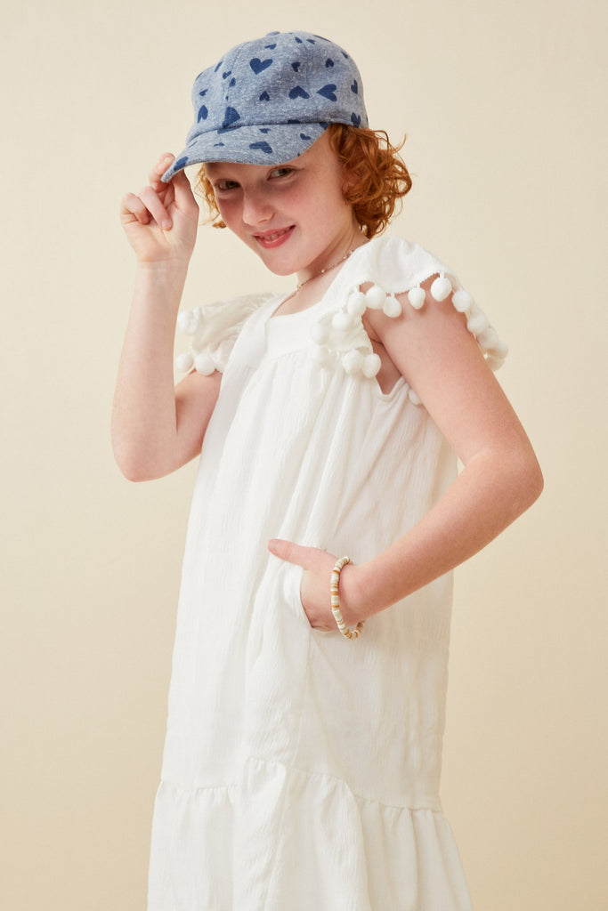 Our Pompom Detailed Textured Ruffle Sleeve Dress Features: