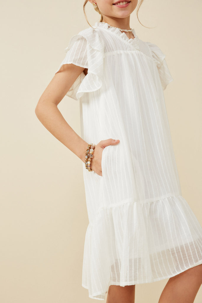 Our Texture Striped Ruffle Sleeve V Neck Dress Features: