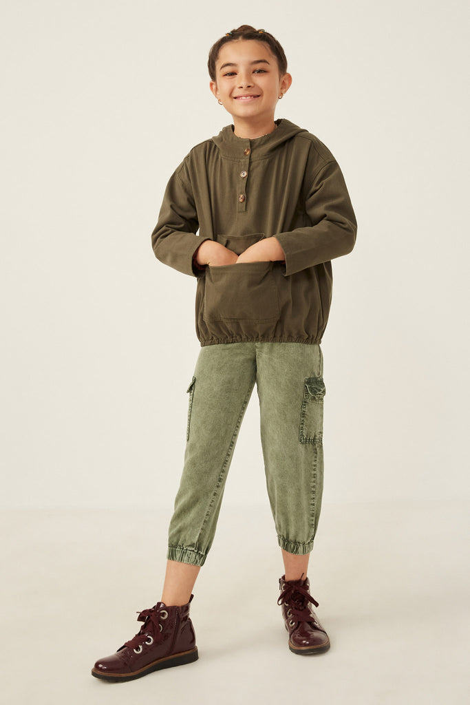 Our Buttoned Cargo Pocket Hooded Top Features: