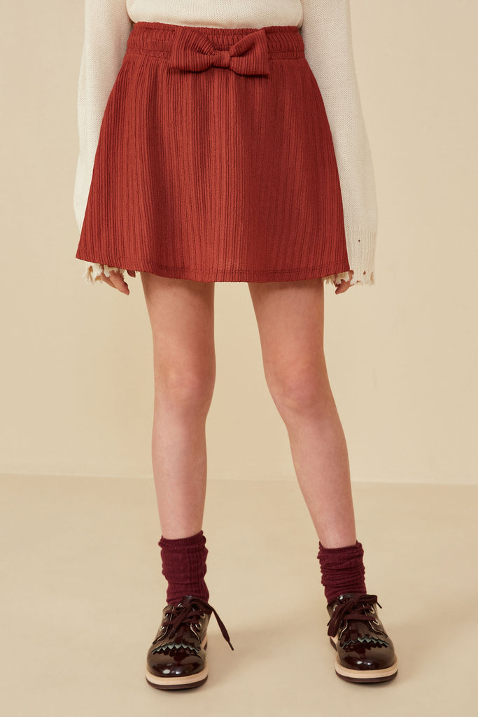Bow Detail Ribbed Knit Elastic Waist Skirt