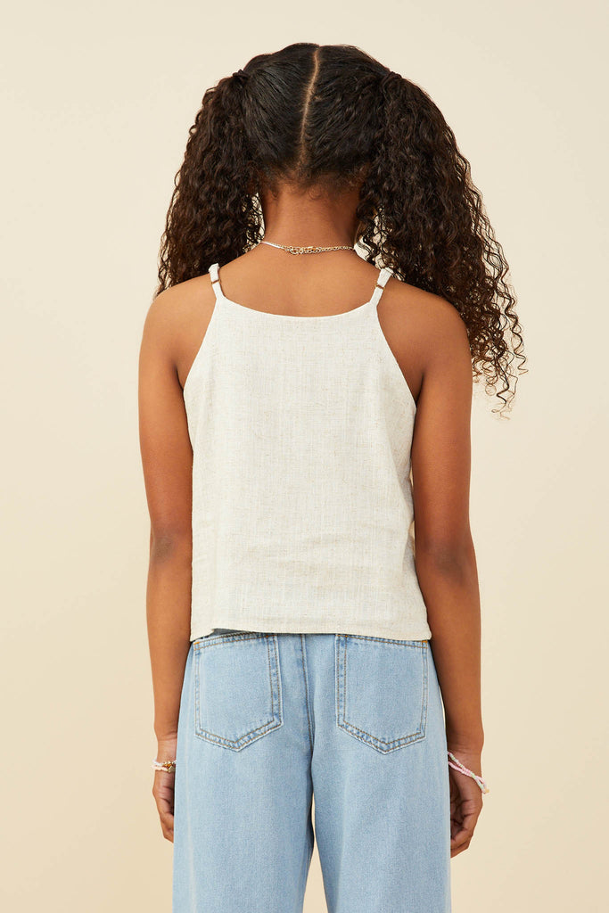 Ruffled Tape Trim Linen Tank