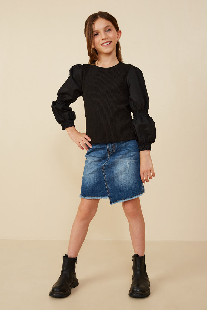 Mix Media Peasant Sleeve Knit Top