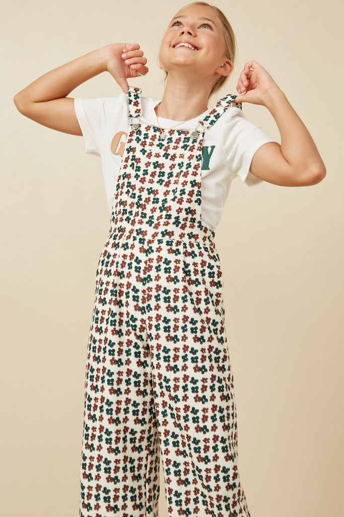 Our Brushed Floral Print Straight Leg Overalls Features: