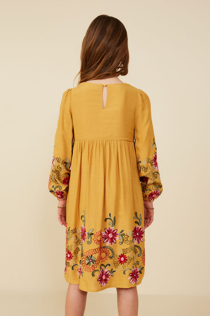 Our Embroidered Detail Long Sleeve Scoop Neck Dress Features: