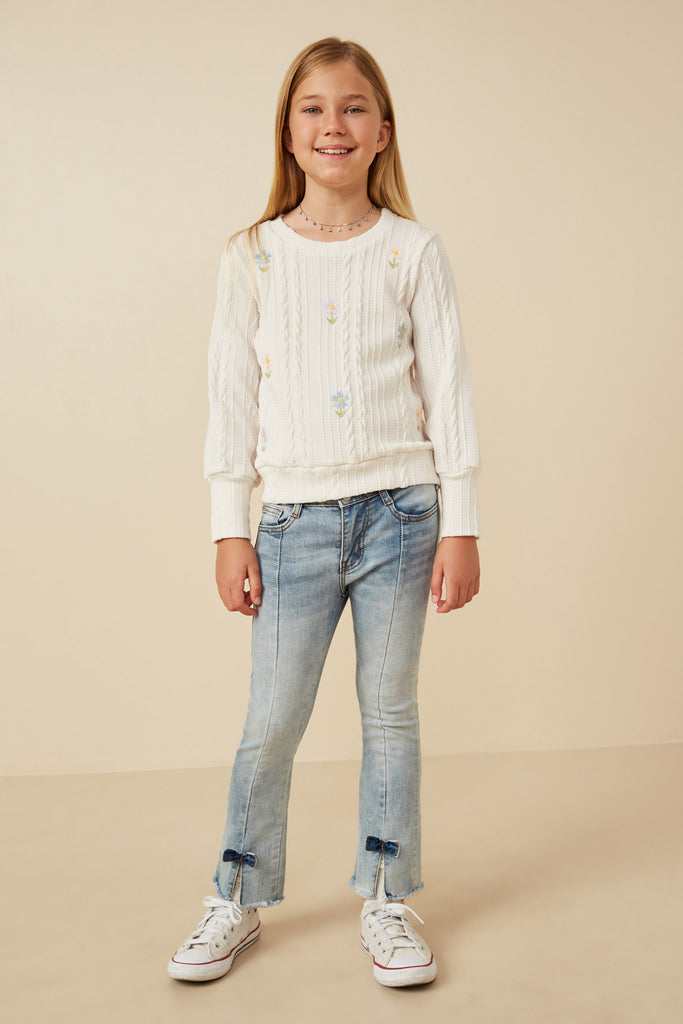 Cable Knit Floral Embroidered Long Sleeve Top