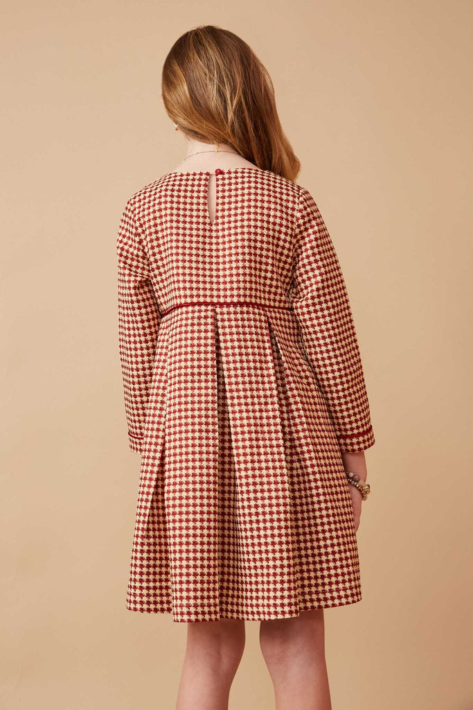 Our Piping Detailed Houndstooth Box Pleat Dress Features: