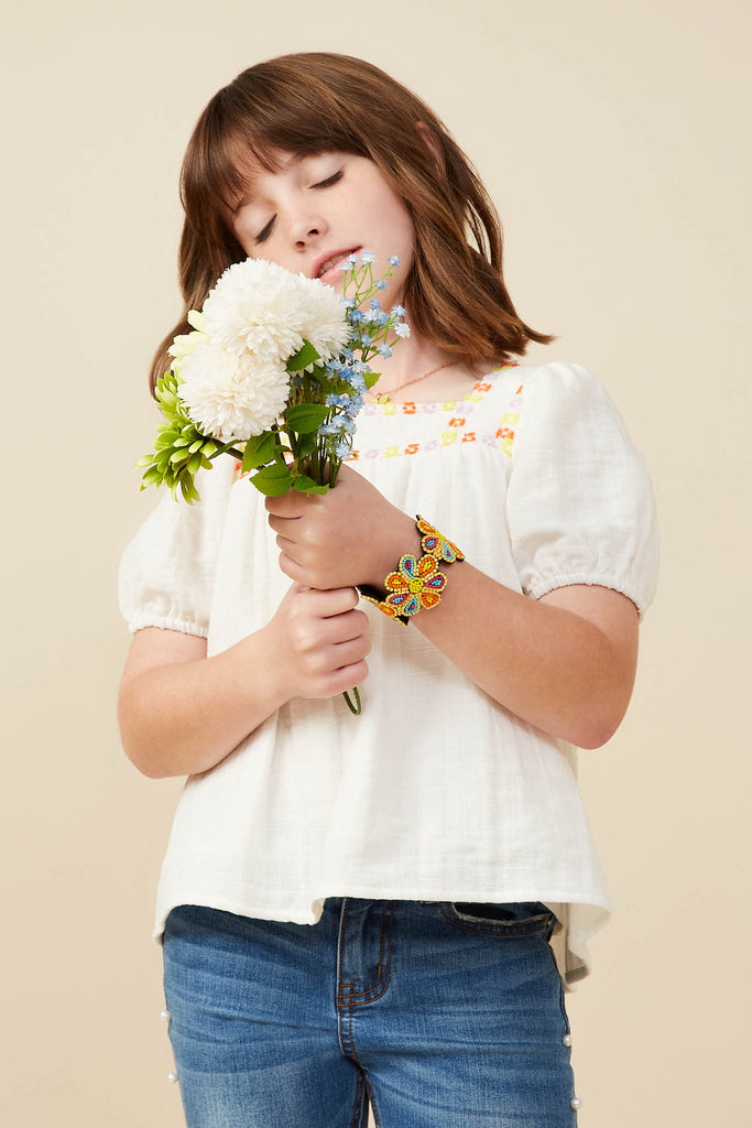 Our Contrast Floral Lace Square Neck Textured Top Features: