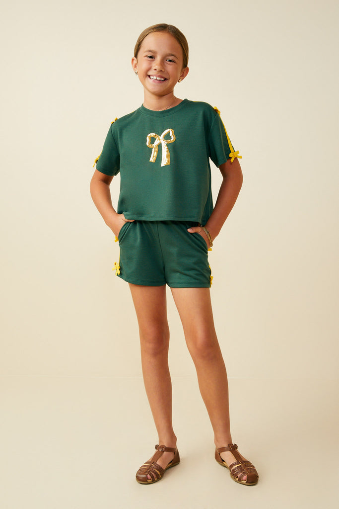 Our Sequin Bow Patch Ribbon Detail Knit Top Features: