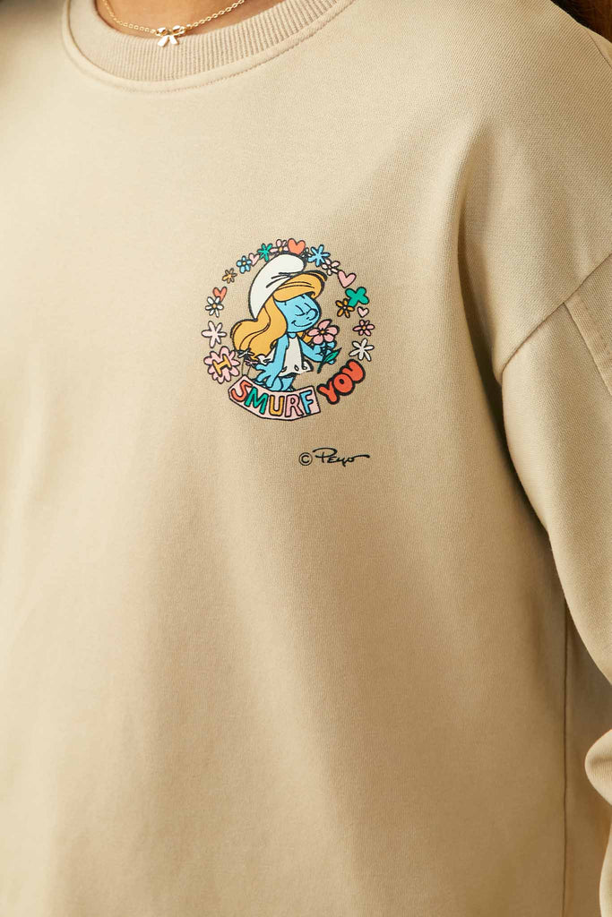 Smurfs All You Need is Love Graphic Garment Washed Sweatshirt