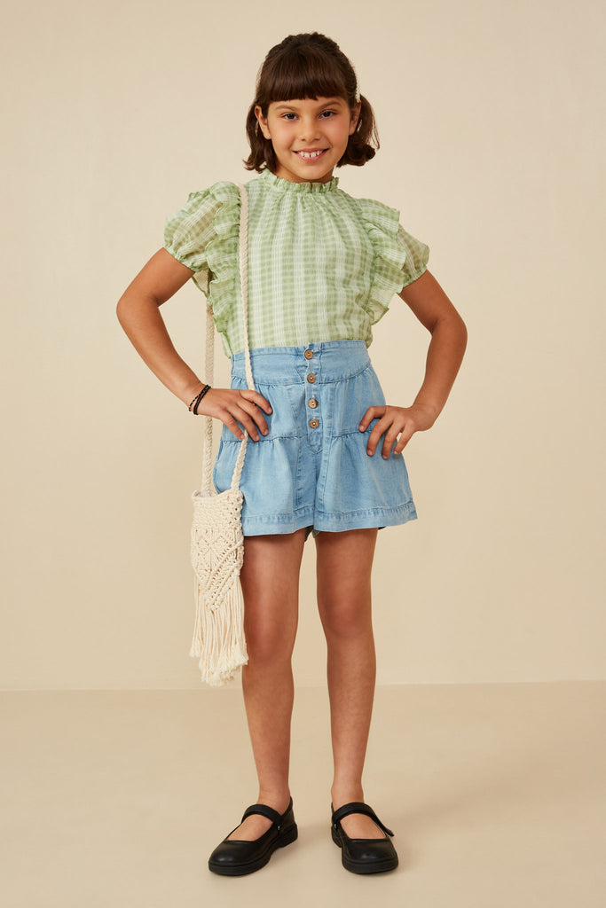 Button Detail Tiered Wideleg Tencel Shorts